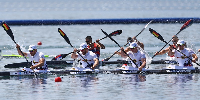 وفازت ألمانيا بذهبية فئة كاياك سريع رباعي 500 م للرجال ضمن رياضة الكانوي السريع، فيما ذهبت الميدالية الفضية لأستراليا، والبرونزية لإسبانيا.