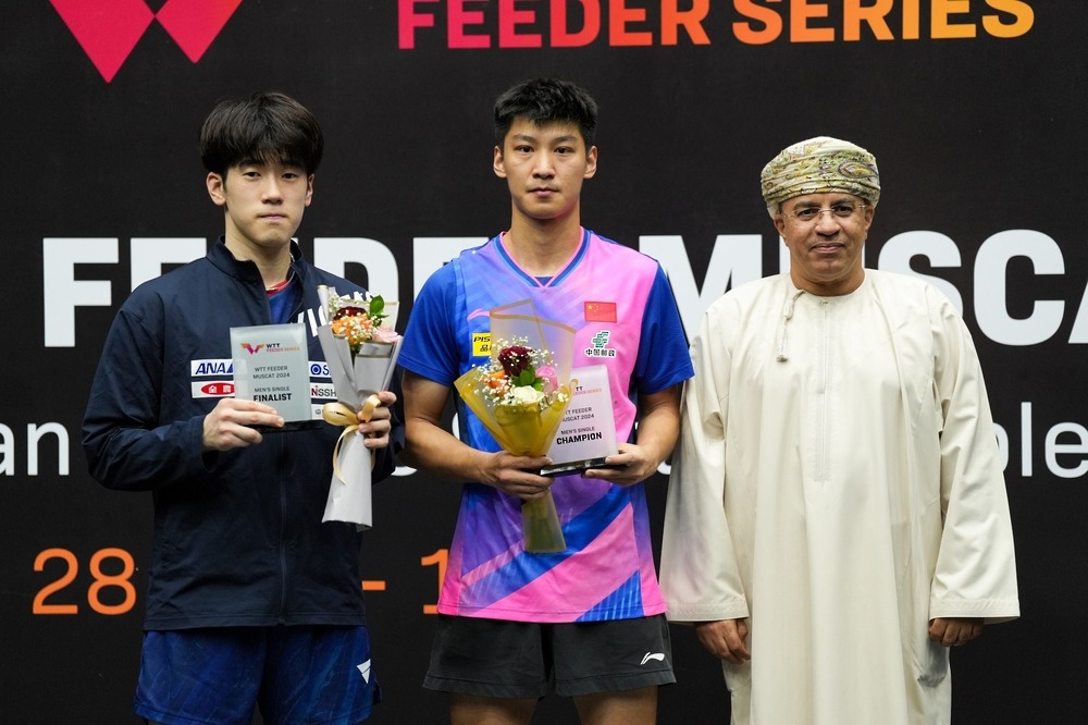 تُوّج اللاعب الصيني أكس بلقب فئة فردي الرجال لمنافسات بطولة عُمان الدولية لكرة الطاولة لعام 2024م وذلك بعد تغلبه على نظيره اللاعب الياباني رويشي يوشيما بنتيجة 3-1 وذلك في اللقاء الختامي للبطولة الذي أقيم بالصالة الرئيسية لمجمع السلطان قابوس الرياضي ببوشر.